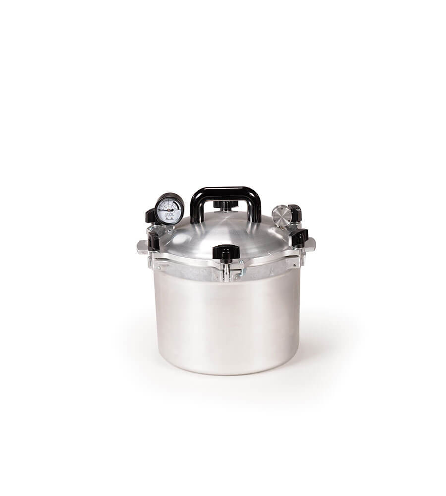 Cook and Can is pleased to offer the full lineup of All American Pressure Canners! All American’s full lineup of Pressure Cooker/Canners includes the 910, 915, 921, 925, 930, and 941. You can see our full selection of All American Pressure Canners here . This is the All American 910 which is the 10 quart version and the smallest of the All American pressure cooker/canner series. It is great for someone new to canning or experienced cooks alike who don’t want their canner to take too much shelf space!