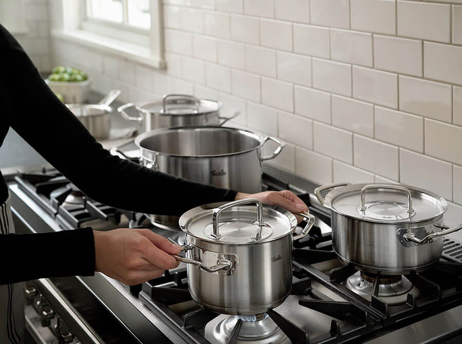 • Metal lids with Fissler Condensate-Plus function : Lids are designed to funnel liquid back into the pot, not your stove!