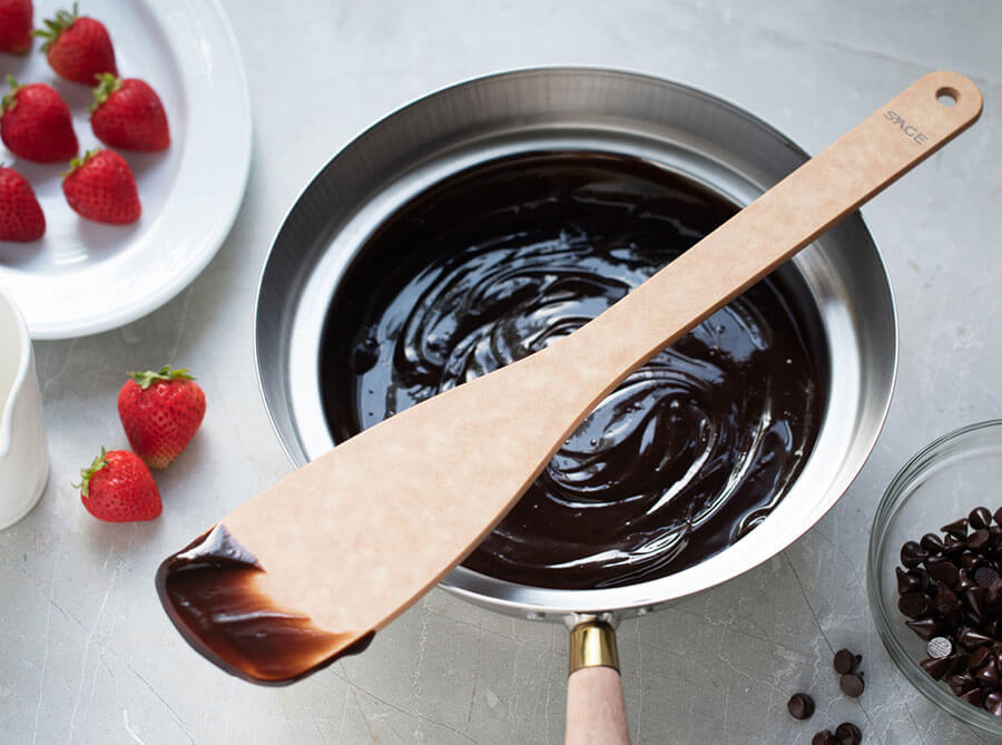 Looking to avoid utensils that scratch cookware but don’t want the hassle of the extra care that wood utensils require? Look no further than this Sage brand woodfiber Pro Stirring tool! Woodfiber is the best of the both worlds – it is soft like wood while being strong and durable like metal utensils. It is dishwasher safe – no special care required!