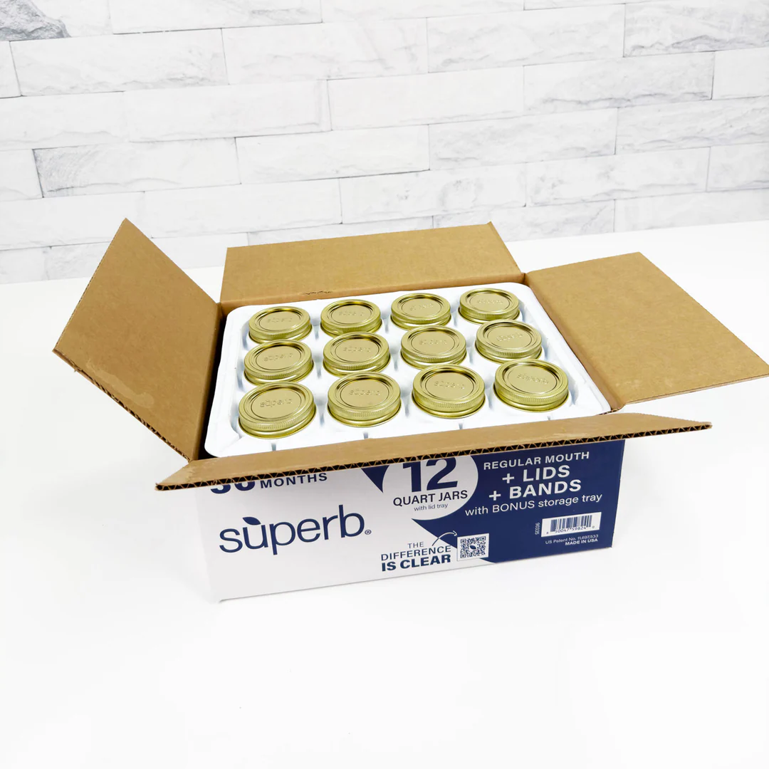 These Superb quart canning jars are crafted in the USA to deliver outstanding clarity, strength, and thermal shock resistance. We think these jars rival the quality of the most famous brand in canning—yes, that big ‘B’ you’re thinking of—while offering Superb’s own American-made craftsmanship. Each 12-pack arrives ready to go with matching lids and bands, giving you a turnkey set for canning, storing, or preserving your favorite foods. As an added bonus, these jars ship in a sturdy storage tray that protects the jars in transit and doubles as a convenient organizer for long-term storage. Plus, the packaging is one of the only drop-rated designs on the canning-jar market, giving you extra confidence that your order will arrive safely while saving a trip to the store.